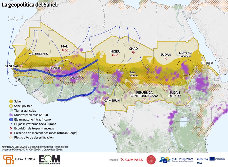 Un espacio que vale tanto por las riquezas naturales que contiene como por las que deja circular (desde el tráfico de personas al de drogas y armas) y que además se ha convertido en un banco de pruebas, en todo un laboratorio de la nueva geopolítica mundial, donde diversos actores, empezando por Rusia, aprovechan el estruendo de los golpes de Estado militares y la retirada de las misiones occidentales para ocupar un espacio que ahora ofrece un silencio inquietante. Porque, insisto, los riesgos están creciendo a gran velocidad: la inestabilidad crece y se expande, acercándose a los países costeros del Golfo de Guinea, cuyo litoral atlántico tanto nos interesan desde el Archipiélago canario.